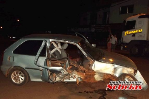 O condutor de um Gol bateu em uma carreta bitrem estacionada