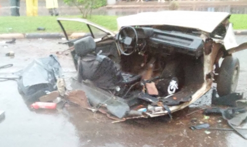 Gol colidiu contra um poste e um caminhão na avenida Expedicionário Weber