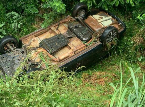 Um dos veÃculos capotou na lateral da rodovia na saÃda para Tuparendi